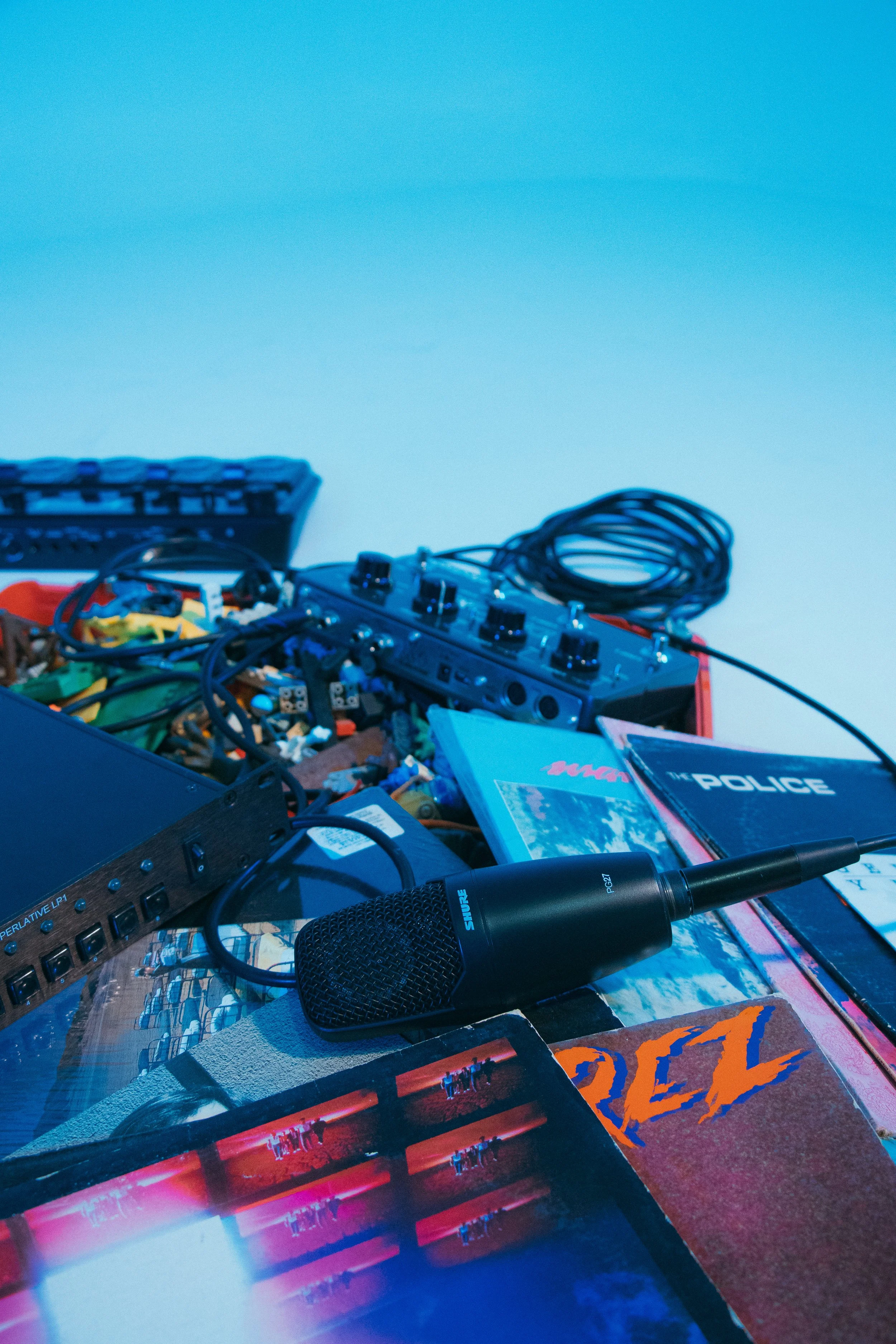 Micrófonos Shure y AKG.